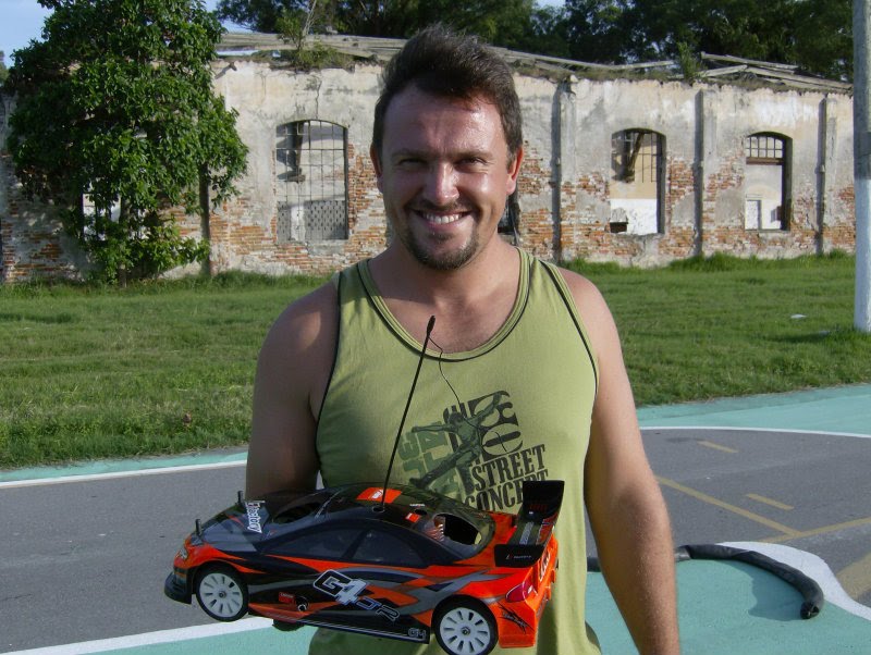 Sofrendo a influência de um amigo que trabalhava comigo, comecei projetando uma tal caixa de partida, que nem sabia bem pra que servia aquela merda heheheheh, mas meu amigo me encomodou tanto que resolvi fazer. Ai comecei ver os tais tão falado Kyosho Fazer. Ao levar a caixa de partida já pronta na pista, pilotei pela primeira vez um automodelo, já era, senti que ali foi amor a primeira vista.