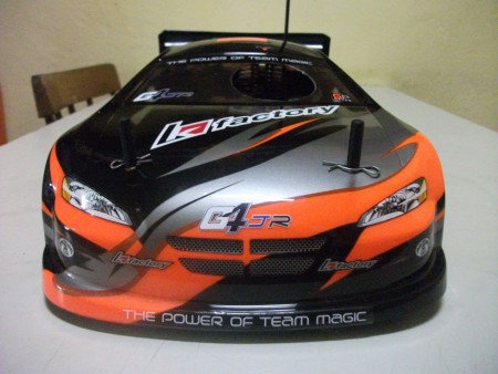 Após um dia exaustivo de treino de Fazer, quem apareceu lá? De novo ele, meu amigo ''chato'' que sempre me bota em ''encrenca''. Trocamos no máximo 3 palavras, ele abriu o porta mala do carro e me entregou sem muito assunto nem opção de dizer que não, zerado na caixa o novo Team Magic G4JR, que arrecem tinha chego para ele. A primeira olhada me expantei com a quantidade de regulagens possíveis do automodelo e imaginando os vários tipos de acertos que eu poderia fazer com aquele automodelo, totalmente diferente do Fazer, é como sair de um Fusca e ir para um Golf. Depois de 2 meses olhando, analisando enfim, botei ele para rodar, me impressionei com a precisão e estabilidade do automodelo. Foi muito legal.